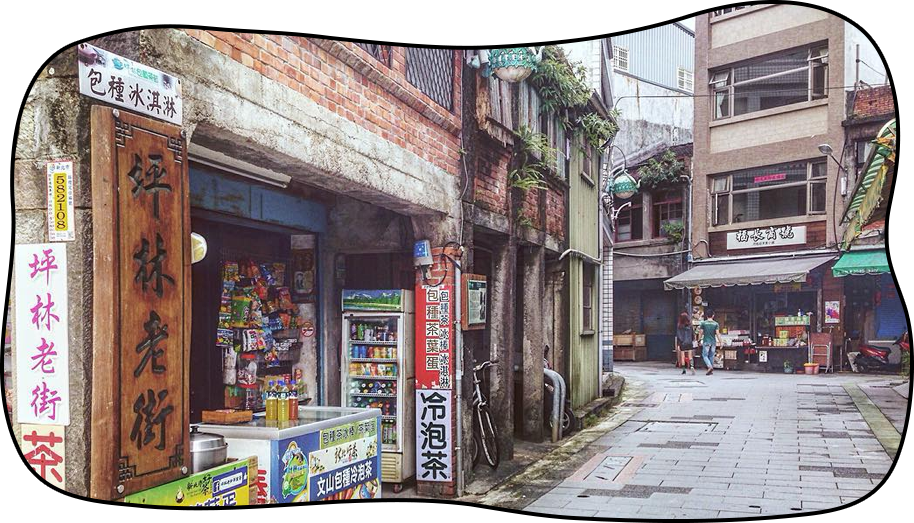 坪林老街整條街道約200公尺,以當地人信仰重心的「保坪宮」為中心點,沿街有糊紙店、賣豆腐的小吃攤、五金雜貨行、茶莊,包含聞名全台灣的「坪林包種茶」。老街上的店家都是結合了坪林在地的茶文化,他們使用包種茶做出各樣創意小吃,像是茶粿、茶饅頭、茶牛軋糖、茶油麵線等等。另外坪林的豆腐也很有名,使用在地山泉水,做出甘甜美味的豆腐料理。來到坪林老街,一定要來試試茶料理和豆腐,絕對讓你大飽口福。